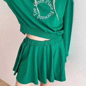 Cathy Sweat Top & Skort Set Elastic waist banding Shorts underneath a flare skirt Product Specification : cotton blend Flat […]