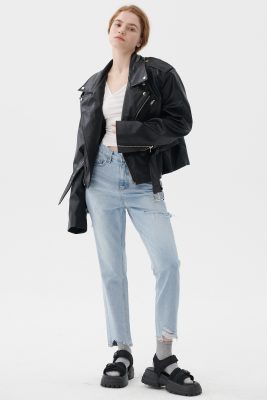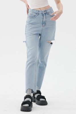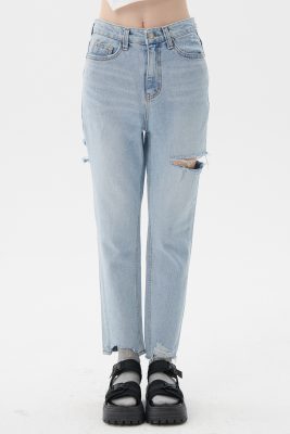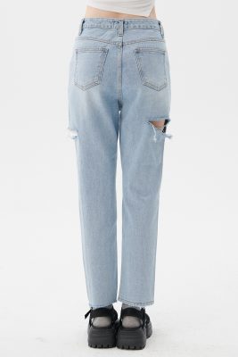 - Side cutout, light washed jeans